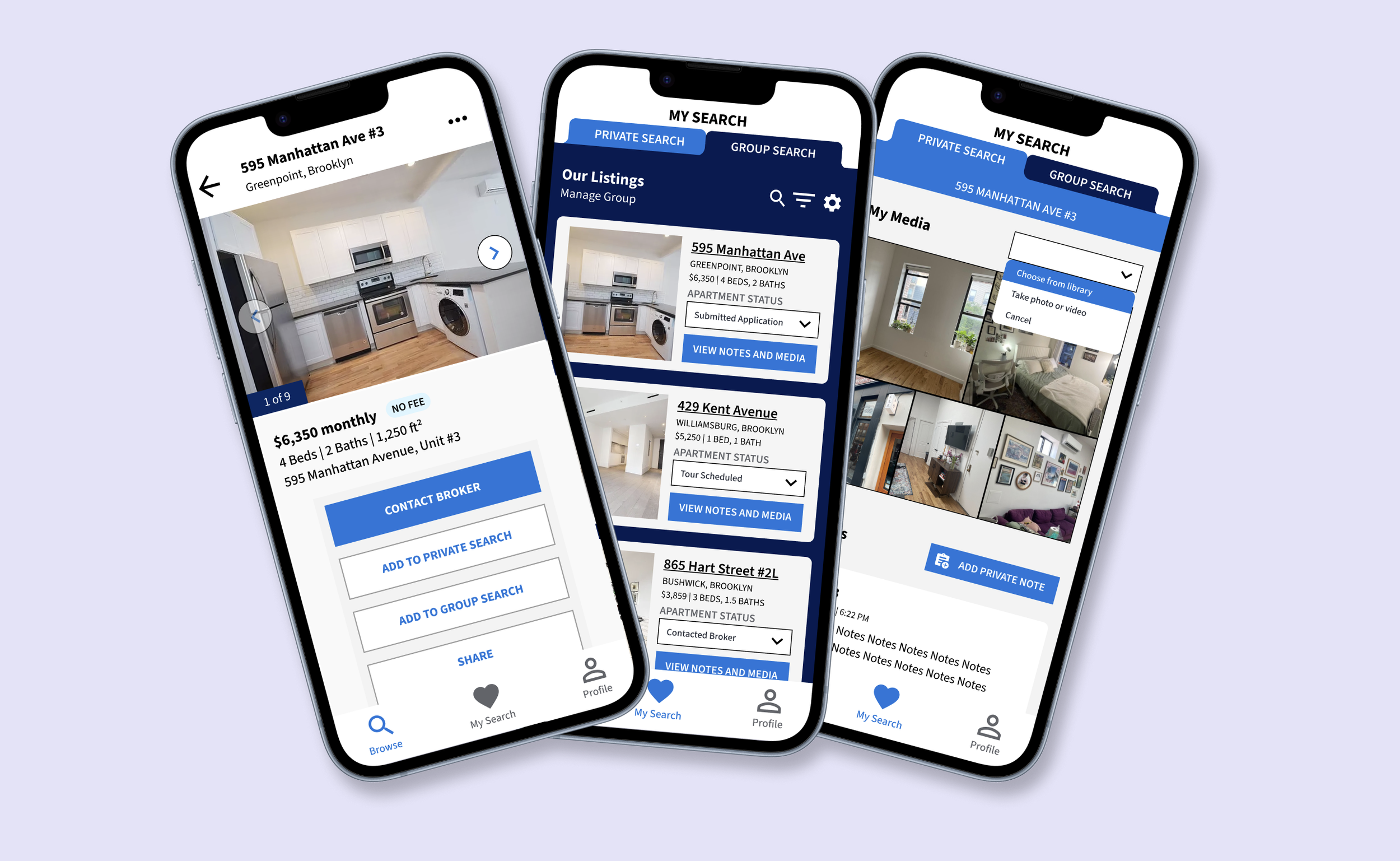 Allow users to upload their own media from tours and notes. This information may be shared between roommates in a group, or potentially made available to other StreetEasy users.